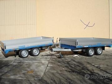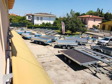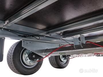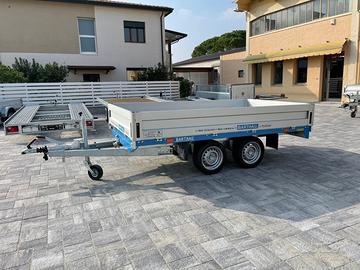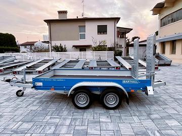 ede Trailer Point VE possibili pagamenti rate.ali da 24 a 48 mesi con minimo anticipo e rientro VS usato Nuovo Rimorchio Barthau EH Biasse 750-2700 kg Ruota da 13' 195/50' media altezza Tipologia :BIASSE RUOTE SOTTO IL PIANALE Telaio modulare in acciaio zincato a caldo ed assemblato con bulloni, timone a "V". Due assali a barra di torsione e sospensione delle ruote indipendenti .Impianto frenante a tamburo,diametro 200 mm., repulsore con retromarcia automatica. Ruotino d'appoggio automatico. Pianale in multistrato marino sp.19 mm. intelaiato con profilo speciale per ganci tendifune , ganci fermacarico con oltre 80 posizioni dx sx e anche anteriormente e posteriormente per una massima sicurezza nel trasporto sponde in alluminio sp.25 mm. Alt.350 mm. apribili ed amovibili. Assali AL_KO con gomme Disponibile in pronta consegna anche la versione ET con ruota bassa 195/55/R10C e con pianale ribassato sempre omologabile a scelta tra 750 kg e 2700 kg ( 750 kg , 850 kg , 1000 kg , 1100 kg , 1200 kg , 1400 kg , 1500 kg , 1600 kg , 1800 kg , 2000 kg , 2200 kg , 2500 kg , 2700 kg ). Impianto elettrico 12 Volt 7/13 poli Omologabile con il seguenti peso complessivo: da 750 Kg a 2700 kg es. 301x170 cm biasse da 750 kg a 2700 kg Pronta Consegna in SEDE TRAILER POINT Venezia ! Disponibili altre misure : 375-412-512-612 cm possibili pagamenti rate.ali da 24 a 48 mesi con minimo anticipo e rientro VS usato