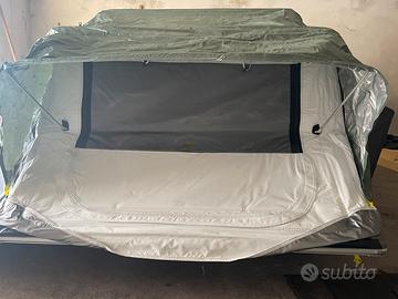 Vendo tenda da tetto acquistata da Decathlon circa 1 anno fa, causa inutilizzo. La tenda è stata montata e utilizzata solo per 3 brevi uscite, quindi si presenta in condizioni pari al nuovo, perfettamente pulita e senza alcun segno di usura. Caratteristiche principali: • Capacità: Ampio spazio interno per 2 persone (materasso incluso di alta qualità). • Stato: Tessuto Fresh & Black (garantisce buio e fresco anche al sole) in condizioni impeccabili. • Condizioni: Sempre rimessata in garage asciutto dopo l'uso. Cerniere, zanzariere e scala telescopica perfette. • Montaggio: Molto semplice e veloce su qualsiasi auto dotata di barre portatutto omologate. Incluso nel prezzo: • Scala in alluminio originale. • Materasso integrato originale Decathlon. • Sacca di protezione esterna come nuova. • Kit di fissaggio completo.