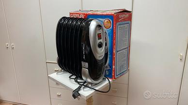 Radiatore ad olio di piccole dimensioni 45x43x10 400-800 watt, ideale per camper, roulotte e ambienti fino 20 mq. Permette l'uso anche in colonnine elettriche a bassa potenza. In ottime condizioni completo di imballo originale e istruzioni.