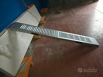 Rampa pieghevole in alluminio, con maniglie per rapporto, molto leggera e con scanalature anti scivolo. Adatta per carico scooter su camper o furgone. Utile per porta moto. Lunghezza 180 aperta. Nuova mai usata, vendo per errato acquisto.