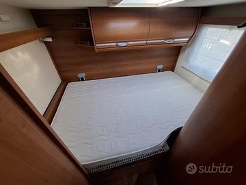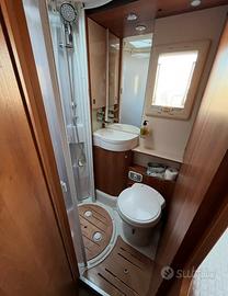 Bellissimo motorhome Rapido 803F, di grande qualità, compatto (lunghezza 5 e 94 m, meno di un furgonato) ma eccezionalmente abitabile anche per 4 persone, tenuto benissimo e CON SOLO 19.800 KM, anno 2016, su Fiat Ducato con motore 2.3 130cv, cerchi in lega Mak da 16 nuovi con gomme Michelin Crossclimate 4 stagioni con 4 mila km, 4 posti viaggio e 4 posti letto. Matrimoniale basculante anteriore che lascia libera la dinette e la porta di ingresso, bagno con doccia separabile con plexiglas e matrimoniale posteriore trasversale regolabile in altezza. Garage posteriore, potente Truma Combi 6kw con comando Cp Plus, Tv con antenna digitale e dvd, radio originale con schermo, dvd, retrocamera posteriore e bluetooth, frigo Dometic automatico, cappa aspirante, luce esterna, antifurto perimetrale e volumetrico, veranda Fiamma, oscuranti plissettati, vano per 2 bombole da 10 kg e zanzariera scorrevole porta entrata. Cinghia distribuzione fatta a gennaio 2025 (la casa lo richiede o per il chilometraggio oppure, come in questo caso, per gli anni trascorsi) e batteria motore NUOVA montata a dicembre 2025. Revisionato fino a ottobre 2026. Un camper pronto a partire, maneggevole e completo. Secondo proprietario. Posso valutare auto in permuta parziale. In caso di permuta, prezzo 59.900. Massima serietà. Il camper l'ho messo in vendita solo perché riesco ad usarlo poco per motivi di lavoro. Il prezzo non è trattabile, specialmente prima di eventuale visione.