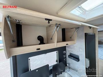 Dispone di letti gemelli posteriori sopra un garage ampio e facilmente accessibile.