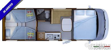 Chilometraggio: Condizioni: nuovo Immatricolazione: Tipologia: Camper - Motorhome Carburante: Diesel Tipo di cambio: Automatico  Cambio Automatico € 3.050,00 PACK SELECT in offerta a soli € 1.990,00 anzichè € 4.110,00 (Telecamera di retromarcia con monitor di controllo integrato al cruscotto, Stazione multimediale DAB PIONEER con schermo 6,8" e funzioni APPLE CARPLAY / ANDROID AUTO, Pneumatici all season 3PMSF, Traction+ con Hill Descent Control (assistenza al mantenimento della velocità costante in discesa), Tendina parabrezza isotermica scorrevole, a doppio plissé: alto/basso (parasole), Porta cellula con serratura a 2 punti con finestra fissa e pattumiera integrata, Zanzariera porta cellula, 2a chiave telecomandata (PLIP), 2a batteria cellula AGM 92 Ah)  DI SERIE  PACK ENERGY (Pannello solare 150 W montato in fabbrica,*Batteria al litio 100 Ah,)DI SERIE PACK SMART (Cerchi in lega leggera 16" (+ 4,5 cm di altezza del veicolo), Volante e pomello del cambio comfort, Rivestimento grigio alluminio su bocchetta di aerazione, Comandi radio al volante (solo integrali))   ALTRE CARATTERISTICHE DI SERIE NELLA SERIE 65° = Cerchi 16" in lega leggera bicolor, Freno di stazionamento elettrico, Volante comfort, Rivestimento grigio sugli aeratori, Stazione multimediale DAB PIONEER con grande schermo 9" touch screen e funzioni APPLE CARPLAY / ANDROID AUTO, Batteria al litio, Pannello solare (montato in fabbrica), Serbatoio acque grigie riscaldato, Selleria edizione speciale ricamata «65 anni» INOLTRE La Serie Edizione Speciale 65o Anniversario si distingue per un design e una decorazione esterna esclusivi, con un logo creato appositamente per festeggiare questo evento e la camera è dotata di una testata del letto retroilluminata, mentre la zona doccia è munita di una pratica pedana nera.PUNTI DI FORZA = Bagno DUO'SPACE per ottimizzare gli spazi, Pedana doccia nera, Letti gemelli (80 x 199 cm + 80 x 185 cm) trasformabili in letto trasversale, Guardaroba ai piedi