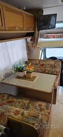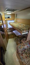 Marca: Rimor Modello: Brig 648Meccanica: Ford Transit Motorizzazione: 2.5 Turbo Chilometraggio: 89.000Immatricolazione: 10/1996 Posti: 6 Mansardato 6 posti letto con cuccetta ascomparsa e doppia dinette, tendalino nuovo, antenna, tv, piedini distazionamento, scalettaa tetto, portabici, ampio bagno con doccia separata,tappezzerie ed interni in perfetto stato, materasso matrimoniale nuovo,antifurto, batterie nuove. lunghezza veicolo mt 6,18