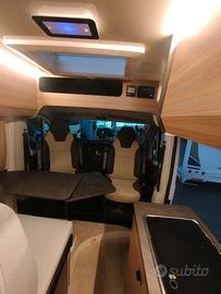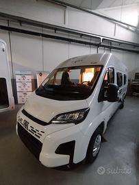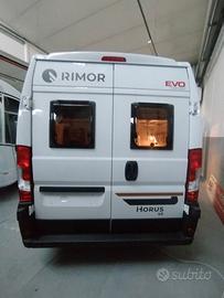 Van compatto RIMOR Horus 45 versione Nordic, veicolo adatto alla famiglia con 4 posti letto omologato 4 posti viaggio. Motorizzazione Fiat Ducato 2200 140 cv. omologato 35 q.li Volante in pelle con comandi, oscuranti termici cabina plissettati, finestre con oscuranti plissettati e zanzariere, oblò midi Heki centrale, luci a led e studa Truma Combi diesel. Letto matrimoniale posteriore a castello, quello superiore è divisibile in due rete separate. Lunghezza 5.99 m. - larghezza 2.05 m. - altezza 2.65 m. Prezzo del veicolo esposto 54.325 €