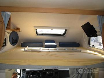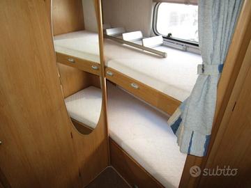 7 posti letto e 6 omologati, con letto matrimoniale in mansarda, dinette classica trasformabile in matrimoniale, seconda dinette trasformabile in divano o letto singolo e letti a castello posteriori.