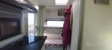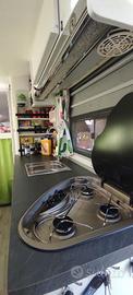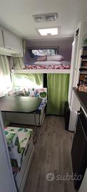 Vendo Rimor Koala su Ford Transit del 1986, 2.5 id aspirato. km 129.000, ruote gemellate, 6 posti marcia e 6 posti letto. interni rifatti completamente: materassi e cuscineria, tappezzeria, tende, cucina 3 fuochi nuova, illuminazione Led. Stufa a gas Trumatic, boiler acqua calda, frigo trivalente, WC nautico, serbatoio acque bianche supplementare. Pannello fotovoltaico da 270 w con inverter da 1500w. E’ stato fermo all’aperto per circa 3 anni in un terreno al mare e presenta corrosione e punti di ruggine nella cabina di guida. Esterno da rinfrescare. Tendalino esterno da riparare. Infiltrazione sul tetto sigillata da monitorare. Da fare revisione scaduta da agosto 2022. Motore a posto. Visto e piaciuto. Disponibili altre foto.