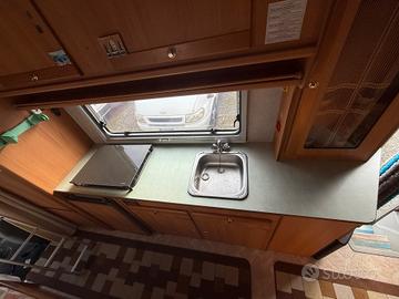 Letti a castello in coda, letto matrimoniale in mansarda, cucina molto grande, bagno con doccia separata, frigo trivalente, stufa, trombo canalizzata, boiler per l'acqua calda, doppio serbatoio, acque chiare, servosterzo, ruote gemellate, gavone del gas dei servizi
