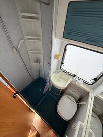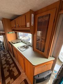 Letti a castello in coda, letto matrimoniale in mansarda, cucina molto grande, bagno con doccia separata, frigo trivalente, stufa, trombo canalizzata, boiler per l'acqua calda, doppio serbatoio, acque chiare, servosterzo, ruote gemellate, gavone del gas dei servizi
