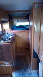 Immatricolato aprile 2004, motore Ford 2500cc, 92kw, 103000km, ruote gemelle, omologato 5 posti e 4 posti letto, lunghezza 6,74mt, + portabici, larghezza 2,22mt, luce soffitto centrale a led, tendalino Fiamma F45 da 4mt, clima cabina, autoradio con CD, antenna tv omnidirezionale compresa TV, pannello fotovoltaico da 200w, batteria di servizio, serbatoio acqua potabile 100lt, porta con zanzariera come su tutte le finestre con 3 oblò con 1 turbovent, oscuranti in cabina manuali, entrambi i sedili girevoli, ampio garage (x 2 bici o 1 moto) portata 150kg con ampie aperture uguali da entrambi i lati.
