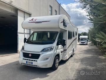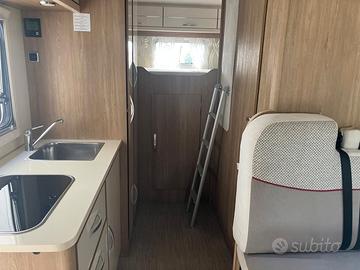 Equipaggiato con: ABS, Clima cabina, chiusura centralizzata, doppio airbag, servosterzo, vetri elettrici, doppio vano porta bombole con regolatore automatico, finestre con oscuranti e zanzariere, porta ingresso con zanzariera, veranda Fiamma mt 4,luci interne a led 3 sezioni, luce esterna a led, frigorifero trivalente automatico a doppia porta lt 145, piano cottura a gas, riscaldamento truma automatico, matrimoniale in mansarda e posteriore, bagno con doccia separata, GARAGE di grandi dimensioni largo cm 137 alto 144, misura porte garage 85 x 130 con porte da entrambi i lati.