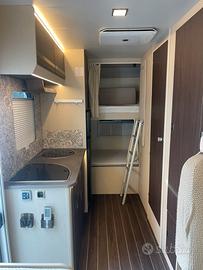 Paraurti verniciato, cerchi in lega da 16", volante in pelle multifunzione, cruise control, retro camera, sensori di parcheggio, radio urvolax da 10", tpms, pannello solare, braccio porta tv regolabile, tv smart, antenna digitale terrestre, copri sedili cabina, batteria Agm, luce esterna, veranda fiamma, doccetta esterna, clima cellula Mecair nuovo modello, doppio serbatoio acque chiare, mansarda sollevabile durante la guida, antifurto Block shaft.