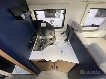 Troviamo di serie l'autoradio 12'' android auto/apple carplay, retrocamera, oscuranti plissettati cabina, piedini di stazionamento, staffa TV, oblò panoramico.