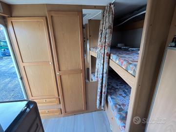 La disposizione interna prevede la doppia dinette trasformabile in letto , ampia mansarda e letti a castello longitudinali