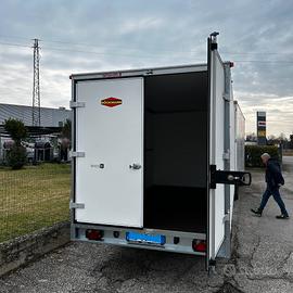 Rimorchio furgonato disponibile in diverse misure: - 3200x2060x2008 mm - 4100x2060x2008 mm - 5100x2060x2008 mm PRENOTA UN APPUNTAMENTO SENZA IMPEGNO, NE VALE LA PENA CHIAMA MATTIA: 3500 Kg la portata complessiva con possibilità di riduzioni 13 pin l' impianto elettrico Ruote da carico Pareti in robusto multistrato marino Il tetto in vetroresina di alta qualità! Ruotino di atterraggio rinforzato 6 Anelli di ancoraggio all'interno Illuminazione interna a led ACCESSORIABILE CON: Supporti di sostegno posteriori Ruota di scorta Cassetta porta oggetti Supporto per moto Staffe ferma carico Rampa di carico portata 1200Kg Porta d'accesso laterale PRENOTA UN APPUNTAMENTO SENZA IMPEGNO, NE VALE LA PENA CHIAMA MATTIA: GBTRAILERS TRAILER E RIMORCHI DI PRIMA CLASSE Offriamo una vasta gamma di trailer e rimorchi adatti a qualsiasi utilizzo: trasporto cavalli e animali, trasporto cose, auto, moto, macchinari, attrezzature, barche e gommoni.Disponiamo di due grandi esposizioni con modelli fuoristrada, ribaltabili, furgonati, basculanti, monoasse, doppio asse e triplo asse. Possiamo soddisfare ogni esigenza di trasporto grazie alla varietà dei nostri rimorchi. Negozi: -- Sede di Pergine Valsugana Via Al Dos de la Roda, 43 - Cirè - Pergine (TN) -- Sede di Verona Loc. Cà di Capri, 104 - Bussolengo - Verona (VR)