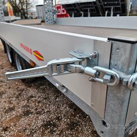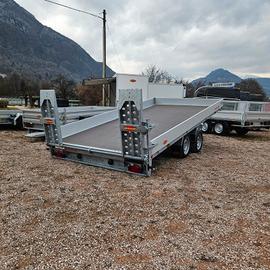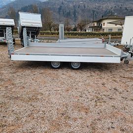 PRONTA CONSEGNA rimorchio TRASPORTO MACCHINARI BASCULANTE MULTIFUNZIONE 4300x2080x200mm utile, con rampe regolabili fisse sul retro Fissa un appuntamento senza impegno, ne vale la pena! Caratteristiche e dotazioni del modello in pronta consegna: Dimensioni utili di 4300 x 2100 x 200 mm. Portata complessiva di 3000 kg, con possibilità di riduzioni. Altezza di carico ridotta di 655 mm. Ganci di ancoraggio in acciaio inox a scomparsa nel cassone. Timone a V autoportante con sistema franante ad inerzia. Ruotino d'appoggio automatico e rinforzato. Sponde laterali e frontale in alluminio anodizzato di alta qualità e sfilabili. Robuste chiusure di sicurezza per arrestare la piattaforma da carico. Sistema di sollevamento idraulico per caricare e scaricare in sicurezza e rapidità. Robustissime rampe di carico posteriore in acciaio zincato. Ruote da carico da R13. GBTRAILERS TRAILER E RIMORCHI DI PRIMA CLASSEOffriamo una vasta gamma di trailer e rimorchi in pronta consegna adatti a qualsiasi utilizzo: trasporto cavalli e animali, trasporto cose, auto, moto, macchinari, attrezzature, barche e gommoni. Disponiamo di due grandi esposizioni con modelli fuoristrada, ribaltabili, furgonati, basculanti, monoasse, doppio asse e triplo asse. Possiamo soddisfare ogni esigenza di trasporto grazie alla varietà dei nostri rimorchi. Fissa un appuntamento senza impegno, ne vale la pena! Martino: Negozi: -- Sede di Pergine ValsuganaVia Al Dos de la Roda, 43 - Cirè - Pergine (TN) -- Sede di VeronaLoc. Cà di Capri, 104 - Bussolengo - Verona (VR)