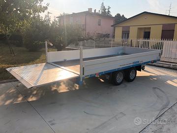 Pianale in multistrato marino spessore 21 mm, profilo speciale con ganci tendifune per fisare il carico , inclinabile idraulicamente, sponde in alluminio, apribili ed amovibili con rampa sponda carrabile posteriore da 650mm.