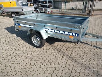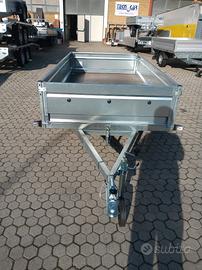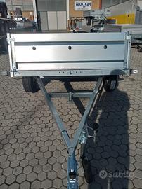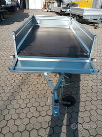 Rimorchio Blyss senza freni misure utili interne 210 x 120, portata complessiva kg.750, ruote esterne da 13", ganci di fissaggio carico a scomparsa , sponde zincate h.cm.35, sponda anteriore e posteriore apribili, inclinabile, pronta consegna
