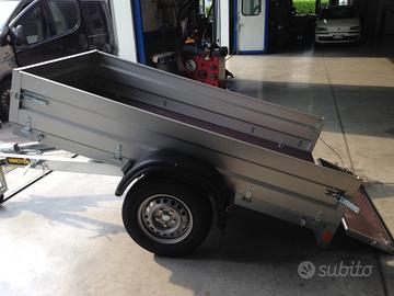 Rimorchio nuovo portatutto con freni e misure utili 220x120 e cassone basculante e 4 sponde alte 35 cm tutte apribili e smontabili con ruote esterne da 13 rinforzate e maggiorate e già 4 stagioni Portata complessiva 13 q e declassabile fino a 7,5q a vostra esigenza, tara del rimorchio 2,8q Prezzo scontato e ivato Pronta consegna presso la nostra sede
