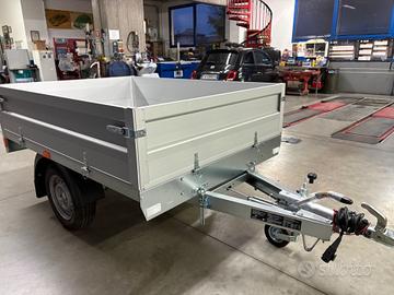 Rimorchio nuovo porta tutto con freni e ruote da 13 sotto il pianale, con tutte le sponde in alluminio alte 40 cm tutte apribili e smontabili e misure utili intente 2 x1,45 con portata complessiva 10q 9q 8q 7,5q