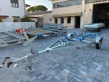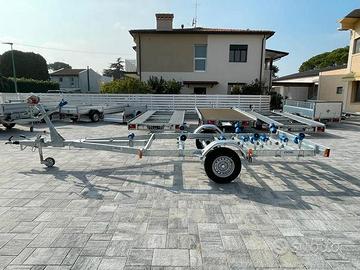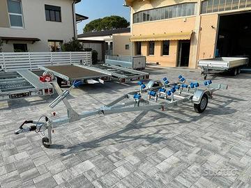 Rimorchio porta barca con meccanica Al-Ko e telaio italiano. Completamente regolabile. Si regola anche la posizione dell'assale.