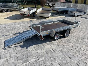Rimorchio Trasporto Macchine Operatrici, Miniescavatore completo di Rampe posteriori verticali, con portata complessiva di 2500 kg