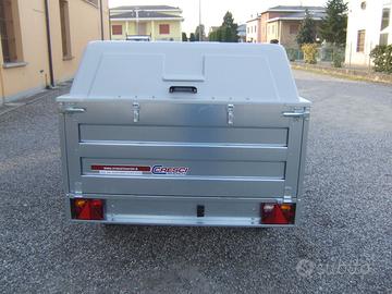 Rimorchio Mod. : A6BF Principali Caratteristiche: Telaio : Profilato di Lamiera grosso Spessore Zincato a Caldo Basculante Timone : Lungo per una Migliore Manovrabilità Repulsore : ALKO Assale : ALKO Monoasse Sponde : Lamiera Zincata Apribile solo Posteriore Sospensione : Barra di Torsione su Gomma a Ruote Indipendenti Piano di Carico : in Lamiera Sagomata Freno : Meccanico con Sbocco Autoreverse per Retromarcia Impianto luci : Nuova Normativa Complessivo di Retromarcia Ruote : 5.00.10 Peso Pieno Carico : Kg. 750/600 Peso Vuoto : Kg. 215 Portata Utile : Kg. 535/385 Lunghezza Max : Cm. 292 Larghezza Max : Cm. 150 Altezza Max : Cm. 150 Altezza Sponde : Cm. 60 Altezza Piano di Carico : Cm. 57 Dimensioni Utili di Carico : Cm. 194 X 141 X 90 Prezzo IVA Compresa € 1920,00 + IMMATRICOLAZIONE L’Acquisto è Finanziabile in Comode Rate Mensili a Vostra Scelta Salvo Approvazione. Visibile A Mirandola via Manicardi 22 (MO)