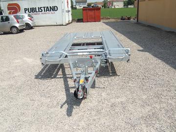Rimorchio Mod. : PA20 Principali Caratteristiche: Telaio : Profilato di Lamiera grosso Spessore Zincato a Caldo Piano di Carico: Basculante Timone : A “ V “ Repulsore : ALKO Assale : ALKO Doppio asse Sospensione : Barra di Torsione su Gomma a Ruote Indipendenti Freno : Meccanico con Sbocco Autoreverse per Retromarcia Pedane di carico: Alluminio di Grosso Spessore Argano: Meccanico Ruotino di stazionamento: Zincato a Caldo con Cuscinetti Impianto luci : Nuova Normativa Complessivo di Retromarcia Ruote : 195/55 R 10 Peso Pieno Carico : Kg. 2500/2200/2000/1700/1500 Peso Vuoto : Kg. 500 Portata Utile : Kg. 2000/1700/1500/1200/1000 Lunghezza Max : Cm. 566 Larghezza Max : Cm. 204 Altezza Max : Cm. 60 Altezza Piano di Carico : Cm. 55 Dimensioni Utili di Carico : Cm. 424 X 195 Prezzo IVA Compresa € 4820,00 + IMMATRICOLAZIONE L’Acquisto è Finanziabile in Comode Rate Mensili a Vostra Scelta, Salvo Approvazione Visibile A Mirandola Via Manicardi N. 22 (MO)