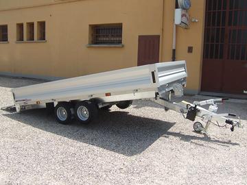 Rimorchio Mod. : PT25 Principali Caratteristiche: Telaio : Profilato di Lamiera grosso Spessore Zincato a Caldo Piano di Carico: Basculante in multistrato marino antiscivolo Martinetto : Manuale Idraulico per Facile Utilizzo Basculante Repulsore : ALKO Assale : ALKO Doppio asse Sponde: In Alluminio Anodizzato Apribili e Smontabili Sospensione : Barra di Torsione su Gomma a Ruote Indipendenti Freno : Meccanico con Sbocco Autoreverse per Retromarcia Pedane di carico: Robusta Ideale per Salire qualsiasi Veicolo Ruotino di stazionamento: Zincato a Caldo con Cuscinetti Impianto luci : Nuova Normativa Complessivo di Retromarcia Ruote : 195/55 R 10 Peso Pieno Carico : Kg. 2500/2200/2000/1700/1500 Peso Vuoto : Kg. 530 Portata Utile : Kg. 1970/1670/1470/1170/970 Lunghezza Max : Cm. 495 Larghezza Max : Cm. 180 Altezza Max : Cm. 138 Altezza Sponde : Cm. 35 Altezza Piano di Carico : Cm. 57 Dimensioni Utili di Carico : Cm. 362 X 171 X 35 Prezzo IVA Compresa € 6400,00 + IMMATRICOLAZIONE L’Acquisto è Finanziabile in Comode Rate Mensili a Vostra Scelta, Salvo Approvazione Visibile A Mirandola Via Manicardi N. 22 (MO)