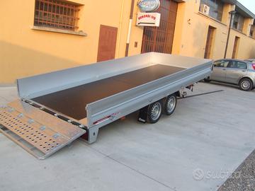 Rimorchio Mod. : PT35-3500 Principali Caratteristiche: Telaio : Profilato di Lamiera grosso Spessore Zincato a Caldo Piano di Carico: Basculante in multistrato marino antiscivolo Martinetto : Manuale Idraulico per Facile Utilizzo Basculante Repulsore : ALKO Assale : ALKO Doppio asse Sponde: In Alluminio Anodizzato Apribili e Smontabili Sospensione : Barra di Torsione su Gomma a Ruote Indipendenti Freno : Meccanico con Sbocco Autoreverse per Retromarcia Pedane di carico: Robusta Ideale per Salire qualsiasi Veicolo Ruotino di stazionamento: Zincato a Caldo con Cuscinetti Impianto luci : Nuova Normativa Complessivo di Retromarcia Ruote : 195/50R13C Peso Pieno Carico : Kg. 3495/3300/3000/2800 Peso Vuoto : Kg. 900 Portata Utile : Kg. 2595/2400/2100/190 Lunghezza Max : Cm. 607 Larghezza Max : Cm. 207 Altezza Max : Cm. 143 Altezza Sponde : Cm. 35 Altezza Piano di Carico : Cm. 57 Dimensioni Utili di Carico : Cm. 450 X 200 X 35 Prezzo IVA Compresa € 8600,00 + IMMATRICOLAZIONE L’Acquisto è Finanziabile in Comode Rate Mensili a Vostra Scelta, Salvo Approvazione Visibile A Mirandola Via Manicardi N. 22 (MO)