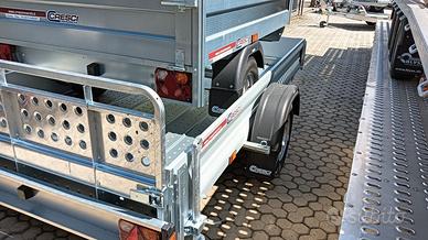RIMORCHIO CRESCI PT7CL, PORTATA COMPLESSIVA KG.750/950, COMPLETO DI SPONDE, PIEDINI POSTERIORI, RAMPA UNICA DI CARICO, DIMENSIONI INTERNE 295 X 150 CON FRENI DISPONIBILITA' IMMEDIATA