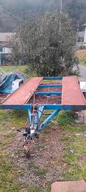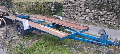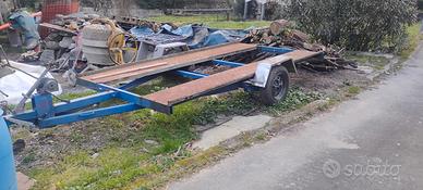 vendo per inutilizzo rimorchio trasporto auto con documenti da passaggio, il rimorchio ha bisogno di un controllo generale da sostituire gomme i fanali non sono presenti in foto ma conservati. portata 550kg peso complessivo a pieno carico 860kg. Il prezzo è già basso quindi non tratto, non consegno ritiro a carico di chi compra.