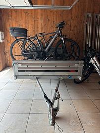 Il carrello é in perfetto stato con soli 250 km percorsi, vendo per inutilizzo, sono stati montati 10 porta bici che possono essere facilmente rimossi, 3 dei quali Thule e 3 peruzzo