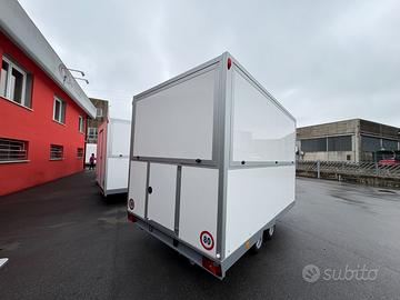 Rimorchi professionali USO FOOD / NEGOZIO / PANINOTECA / FRITTELLE / realizzati con telai saldati e zincati, pannelli sandwich coibentati e alluminio anodizzato di qualità !