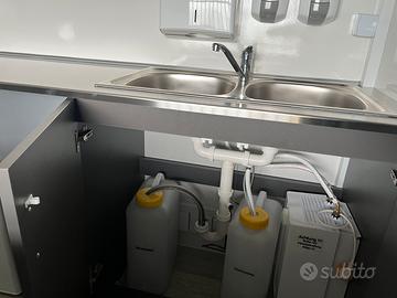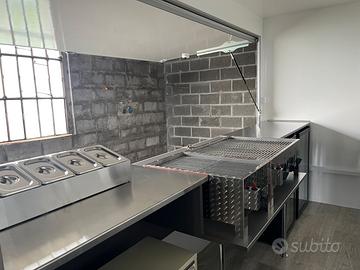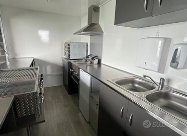 Rimorchio Commerciale Monoasse con Finestra di Vendita - Ideale Food Truck / Street Food Guidabile con patente B Accessori: Friggitrice doppia vasca Piastra a gas Cappa aspiratrice con motore N. 2 frigoriferi bevande 86 L N. 1 frigorifero 80 L Forno elettrico pizza Max 350° 2 teglie Contenitore alimenti 5 scomparti Pattumiera 3 settori Impianto idraulico acqua calda e fredda Scomparto per bombola gas o vano Pensili Rimorchio commerciale monoasse con 1 finestra di vendita, ideale per street food, food truck, chiosco mobile, attività ambulante, sagre, fiere ed eventi. I rimorchi commerciali TOMPLAN sono realizzati con moderna tecnologia costruttiva a pannelli sandwich, che garantisce elevato isolamento termico, robustezza strutturale e lunga durata nel tempo. Le pareti (spessore circa 30 mm) sono composte da un rivestimento interno ed esterno in laminato poliestere. Dimensioni Interne 300 x 200 x 230 cm Massa complessiva (GVW): 1300 kg Portata massima: 680 kg Ruotino di supporto con morsetto, 4 piedini stabilizzatori angolari regolabili, manovella per piedini, ruote 165 R13C Parole chiave: rimorchio food truck, trailer street food, chiosco mobile, rimorchio gastronomico, rimorchio per vendita ambulante, food trailer, rimorchio monoasse frenato, rimorchio per sagre, rimorchio