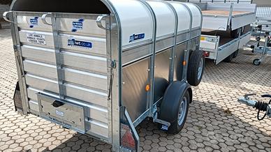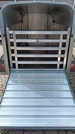 RIMORCHIO IFOR WILLIAMS TRASPORTO ANIMALI , TAGLIA MEDIA,MONOASSE CON FRENI MISURE UTILI CM.260 X 122 X 154 H, COMPLETO DI RUOTA DI SCORTA , IMPIANTO ELETTRICO FULL LED, PORTATA COMPLESSIVA KG.1400, COMPLETO DI APERTURA LATERALE, FERITOIE LATERALI AERAZIONE, RAMPA POSTERIORE COMPLETA DI RINGHIERE LATERALI