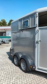 RIMORCHIO IFOR WILLIAMS TRASPORTO CAVALLI 2 POSTI PORTATA COMPLESSIVA KG.2000, MODELLO HB511 COMPLETO DI SELLERIA, PORTA RAMPA ANTERIORE DX, FINESTRE CON VETRI SCORREVOLI, DIVISORIO INTERNO, RUOTA DI SCORTA, RAMPA POSTERIORE DIVISIBILE IN 2 PORTE,OPPURE APRIBILE NORMALMENTE COME RAMPA UNICA, PAVIMENTO IN ALLUMINIO MODULARE, RIVESTITO CON ROBUSTA GOMMA ANTIURTO RIMORCHIO TOP DI ALLESTIMENTO, NUOVO DA IMMATRICOLARE , TELAIO CON BALESTRE E AMMORTIZZATORI, RIMORCHIO NUOVO DA IMMATRICOLARE PORTATA COMPL.KG.2700