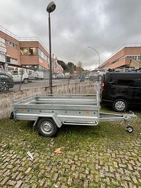 Vendesi rimorchio PRO-ALP con misure utili di carico di 252x139cm con sponda da 50cm monoasse non frenato da 750kg. Pianale basculante. Massa complessiva di 750kg e può essere tranquillamente trainato con patente B.