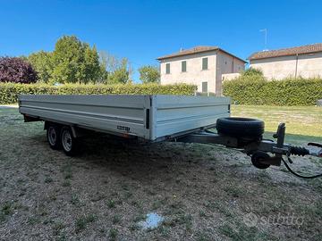 Rimorchio Ellebi in perfette condizioni e appena collaudato. Ha una portata di 20 quintali e una massa a pieno carico di 25 quintali. Dimensioni utili del pianale 4 metri x 2,10 metri