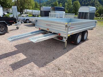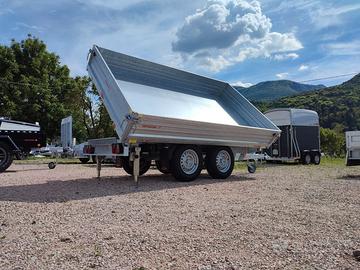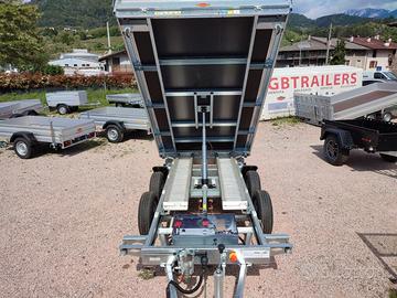 CARRELLO RIMORCHIO RIBALTABILE TRI-LATERALE Fissa un appuntamento senza impegno, ne vale la pena Da 3240 x 1800 a 4140 x 2100 le dimensioni utili di carico Fino a 3500 Kg la portata complessiva con possibilità di riduzioni 4 le sponde apribili in robusto acciaio Ganci in acciaio inox con molla antivibrazioni 13 pin l' impianto elettrico R 14 o R13 le ruote da carico Pianale rivestito in acciaio zincato Ruotino di atterraggio automatico e rinforzato 45° di inclinazione per lo scarico Ribaltamento elettrico con pompa manuale di emergenza Robustissime le rampe di carico in allumino, alloggiate sotto il cassone Supporti di sostegno posteriori Fissa un appuntamento senza impegno, ne vale la pena! Martino: GBTRAILERS TRAILER E RIMORCHI DI PRIMA CLASSEOffriamo una vasta gamma di trailer e rimorchi in pronta consegna adatti a qualsiasi utilizzo: trasporto cavalli e animali, trasporto cose, auto, moto, macchinari, attrezzature, barche e gommoni.Disponiamo di due grandi esposizioni con modelli fuoristrada, ribaltabili, furgonati, basculanti, monoasse, doppio asse e triplo asse. Possiamo soddisfare ogni esigenza di trasporto grazie alla varietà dei nostri rimorchi. GBTRAILERS TRAILER E RIMORCHI DI PRIMA CLASSE Negozi: -- Sede di Pergine Valsugana Via Al Dos de la Roda, 43 - Cirè - Pergine (TN) -- Sede di Verona Loc. Cà di Capri, 104 - Bussolengo - Verona (VR)