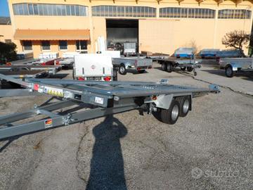 Ottimo anche per veicoli con baricentro molto alto, in quanto ha un telaio ribassato con ruote da 10' studiato per esser caricato su 4 punti.