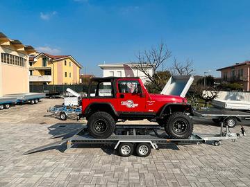 Ottimo anche per veicoli con baricentro molto alto, in quanto ha un telaio ribassato con ruote da 10' studiato per esser caricato su 4 punti.