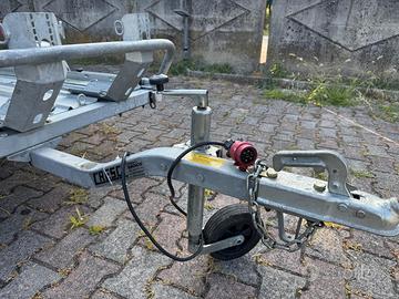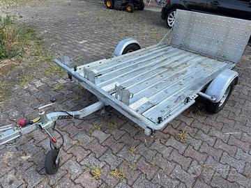 Rimorchio cresci senza freni, anno 2004, perfetto, revisione fatta a novembre , omologato trasporto cose, con tre supporti da moto, portata 430 kg peso totale 610 kg. Dimensioni vano di carico 225x130, pedana/rampa posteriore per il carico.