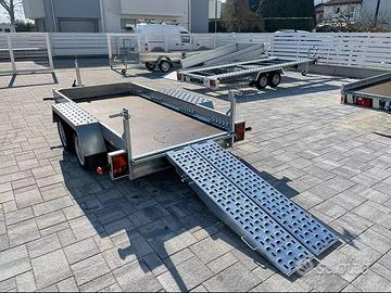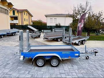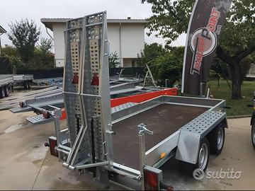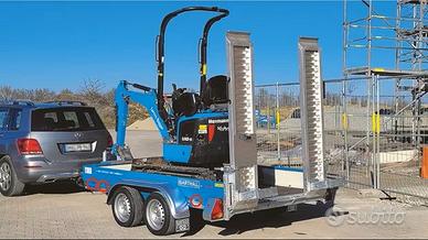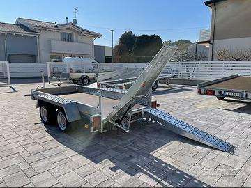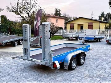 Rimorchio Trasporto Macchine Operatrici, Mini-escavatore completodi Rampe posteriori verticali, con portata complessiva di 2700 kg.