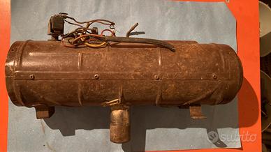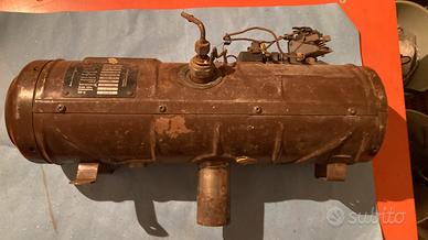Riscaldatore autonomo a gasolio Eberspächer Typ X2, prodotto in Germania Ovest nel 1977. Targhetta originale perfettamente leggibile. Alimentazione 12V, potenza 1750 kcal/h, combustibile gasolio. Proveniente probabilmente da autobus, pullman, veicolo commerciale pesante degli anni ’70 o camper su base Bedford CF. Condizioni esterne: ossidazione diffusa, cablaggio originale presente. Non testato. Ideale per restauro, esposizione o collezione di veicoli d’epoca.