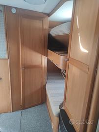 Letto matrimoniale con rete a doghe e lettino alto contenitore