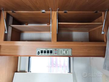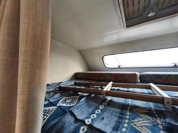 Ottima abitabilità interna in 5,50 m di lunghezza e 2,25 m di larghezza, 4 posti letto, 4 posti omologati per il viaggio, equipaggiato con i seguenti accessori: