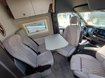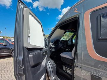 Dopo aver presentato la Schumacher Edition, Robeta ha ravvivato l'attenzione per i suoi prodotti con il nuovo van Adonis, realizzato su chassis Mercedes Benz, con lunghezza di 5,93 metri. Top di gamma del brand, il nuovo Adonis può unire compattezza e innovazione, raffinatezza e funzionalità, in un unico modello di spicco, utile sia per i viaggi in giornata che per soddisfare le ambizioni di chi sta progettando un'escursione più lunga Nonostante la lunghezza di poco inferiore ai 6 metri, il veicolo Robeta può accontentare le esigenze di viaggio di quattro persone, divenendo così la scelta ideale per le famiglie o le coppie di amici. Il nuovo Adonis è peraltro completamente attrezzato, pronto per l'uso: dal sistema di navigazione all'assistenza alla guida, dall'illuminazione LED all'apertura e alla chiusura elettronica delle porte a scorrimento, il veicolo dispone di tutto l'occorrente per partire per ogni viaggio con il piede giusto. L'alimentazione è invece riconducibile a un sistema a batterie LiON da 100 Ah e a un impianto solare da 230W. La presenza di un display digitale di controllo interno permette di avere sempre sotto controllo il funzionamento di questi e altri sistemi elettrici presenti nell'Adonis. Per il resto, lo spazio interno propone un'altezza di 2,55 metri, quattro posti a sedere e due letti da 150 x 187 cm. Nella zona cucina abbiamo tutto l'occorrente per qualsiasi soluzione culinaria, compreso un elegante lavandino a scomparsa, mentre il bagno propone un innovativo sistema di porte in vetro a 180 gradi che assicura una innovativa percezione d'utilizzo di questo angolo, con la porta a sinistra che garantisce una maggiore privacy mediante la separazione tra la zona giorno e quella notte