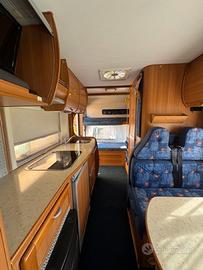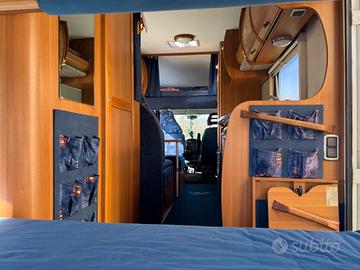 Veicolo mantenuto in perfetta efficienza meccanica, sigillature e impianti 100% (uso quotidiano come ufficio mobile). Iscritto ASI-RIVARS: esenzione bollo e assicurazione agevolata, senza limiti orari di utilizzo incluso blocco Euro3 Lombardia. Layout classico ed equilibrato: 5 posti viaggio/letto, con living accogliente e ottima vivibilità interna, letti comodi, cucina e bagno pratici ed ampi. Gavone / garage a volume variabile. Zona notte: matrimoniale 200x140 in mansarda + 2 letti a castello 208x80 + 5° letto in dinette. Ogni posto letto ha una finestra dedicata con oscurante, zanzariera e luce di lettura. Materassi nuovi, fodere perfette e pulite. Cucina: zona lavoro ampia con piano cottura 3 fuochi e lavello, tutto inox. Cappa aspirante. Frigo trivalente Dometic con freezer e ventilazione estiva. 2 ampi pensili, cassetto portaposate, 2 cassettoni e carrello estraibile. Cantina portabottiglie. Locale bagno finestrato con lavabo e WC a cassetta Thetford 18l (nuova). Ampia doccia separata. Guardaroba ampio e completato da giro pensili su dinette e tasche portaoggetti. Mobilio in legno di qualità, che rende silenziosa la marcia evitando i fastidiosi cigolii tipici di molti camper recenti, se costruiti in economia. Impianti: stufa Trumatic (regolazione automatica ventilazione). Boiler Truma 10l. 2 bombole gas 11kg con DuoControl. 2 serbatoi acque chiare (tot 220 l), serbatoio grigie 100l (predisp. riscaldamento). Batteria servizi AGM 95Ah (2024) e pannello FV da 200W con MPPT NDS. Predisp. PowerStation/inverter (non fornita). Meccanica: Ducato 2.800 JTD 128cv. Manutenzioni scrupolose e regolari, tutte documentate. Nel 2025 pulizia e revisione completa iniezione e turbo presso nota officina specialista diesel. Recente sostituzione pastiglie, dischi freno e cuscinetti ruota. Pneumatici Michelin Alpin rinforzati e specifici camper (2024, in ottime condizioni). Batteria motore recente (2024). Accessori: Tendalino Fiamma nuovo, TV digit con DVD, portabici 3p, allarme.