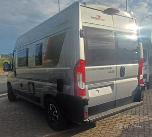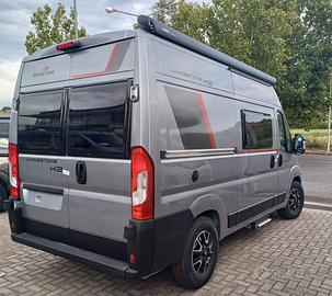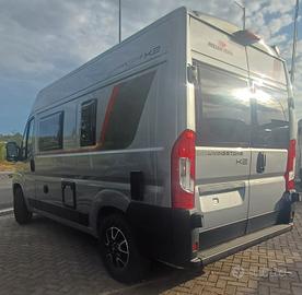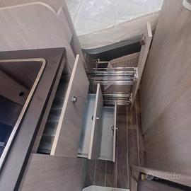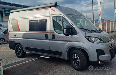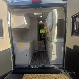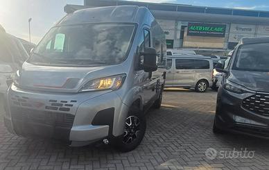 Lunghezza 5.40mt Larghezza 2.05mt | 4 posti viaggio | 3 posti letto DUCATO 2.200 140 CV - Oblò Midi Heki 500X700 - Zanzariera portellone laterale - Gradino elettrico - Pannello solare - Veranda - Autoradio Pioneer touch-screen 9" con retrocamera e CarPlay - Cerchi in lega 16" - Fendinebbia - Volante e cambio in pelle - Riscaldamento Webasto Airtop 40 SPORT Diesel - Frigorifero a compressore - Luce esterna -Oscuranti plissettati in cabina -start e stop, fix e go, doppio air bag, cruise control, sbinatore elettrico -traction , pannello solare, pronta consegna